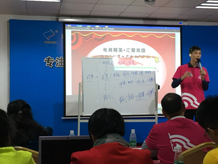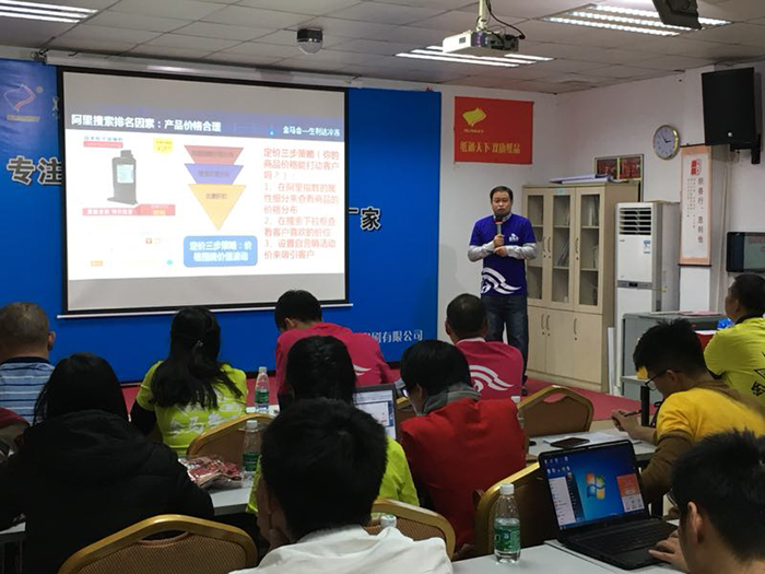 3.最后,由 东莞市生利达制冷 网销主管唐怡博分享他运营阿里巴巴的心得,小唐非常专业,每次分享他自己的干货的时候都十分的用心,准备好PPT,所以生利达的阿里流量和搜索排名都非常的棒,他这次分享的主题是《学会这三招,阿里巴巴店铺转化不用愁》,现场反映特别好,很多听课的伙伴都举起手机拍PPT,记下要点,回去再做改进自己的阿里巴巴店铺问题.