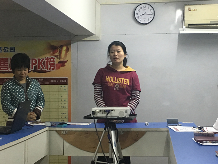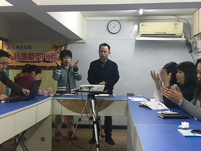 再有请上周周冠军李飞燕分享一下关于销售方面的技巧,她说这周她重点关注了一下大客户,这类客户一次拿货量比较多,服务一个小客户也是要这么多时间,大客户也是要这么多时间,所以她上周把焦点放在大客户身上。