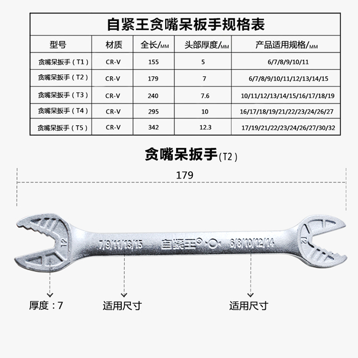 T4扳手的出现补齐了自紧王的全部型号,基本的螺母都使用,自紧王贪嘴扳手现在是全套装备齐全,适合多种情况使用,