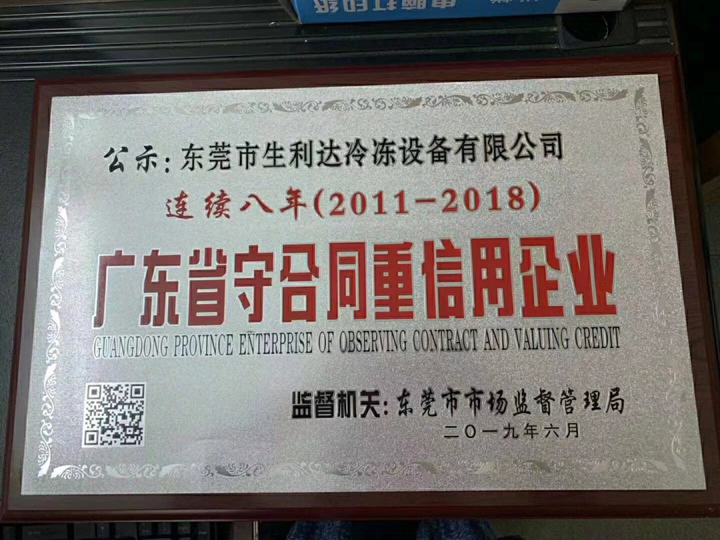 生利达冷冻设备有限公司连续八年获得广东省守合同重信用企业认定,有利于提高企业诚信度和树立企业良好形象,还可以体现企业是以诚信求生存、同时也有利于增强企业市场或在同行中的竞争力。
